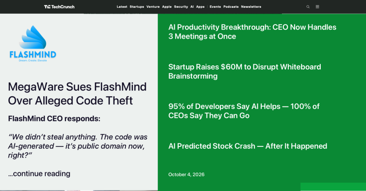 - October: MegaWare sues FlashMind for using protected IP in AI-generated code.